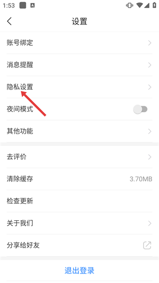 2、進(jìn)入設(shè)置頁(yè)面后,選擇【隱私設(shè)置】選項(xiàng),進(jìn)入隱私相關(guān)的配置管理界面。
